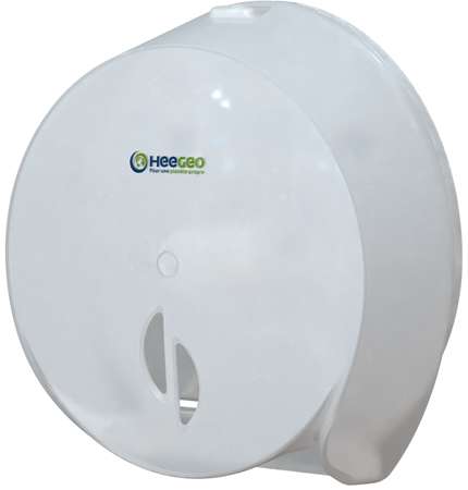 Distributeur de papier hygiénique pour rouleaux de 200 mètres, fabriqué en polypropylène de haute qualité partiellement recyclé, assurant souplesse, robustesse et fiabilité.