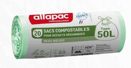 SAC 2 NOEUDS BIOCOMPOSTABLE ALFAPAC 50L 18µ TRANSPARENT
